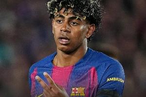 亚马尔为巴萨打进全场唯一入球,确保球队在积分榜9分领先皇马。但这位18岁的西班牙球星大腿腘绳肌拉伤,很可能提前结束赛季。希望不会影响他参加美加墨世界杯。