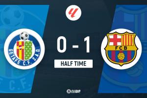 24直播网4月25日讯 北京时间4月25日晚22时15分,2025-26赛季西甲第32轮在阿方索·佩雷斯球场展开角逐,巴塞罗那客场对阵赫塔费。上半场费尔明打破僵局,佩德里直塞助攻,孔德和加维染黄,巴萨客场暂时1-0领先赫塔费,巴萨半场控球近8成。
