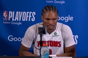 24直播网4月26日讯 NBA首轮季后赛,活塞(1)105-113不敌(2)魔术。赛后奥萨尔·汤普森接受了采访,以下为采访全文。