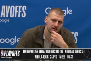 24直播网4月26日讯 在今天结束的一场季后赛中,掘金以96-112不敌森林狼。赛后,掘金球星尼科拉·约基奇出席了新闻发布会。以下是完整版采访内容。