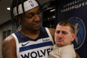 球迷:约基奇、穆雷,除了阿龙・戈登之外的所有重要球员,打森林狼时都拉胯了。1-3 落后逆转不是不可能,尤其是对这支掘金队来说,但考虑到他们这轮系列赛一直被按在地上摩擦,这看起来不太可能发生。戈贝尔和道苏姆真的是神了。