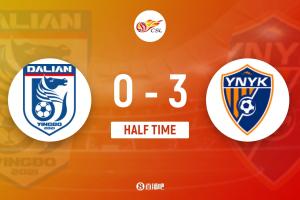 上半场比赛结束,大连英博0-3云南玉昆。