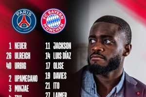 拜仁欧冠半决赛首回合名单:凯恩、穆西亚拉、奥利塞、基米希在列