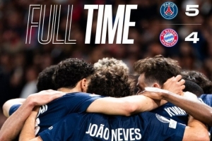 24直播网4月29日讯 本轮欧冠半决赛首回合,巴黎主场5-4拜仁。