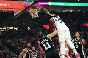 24直播网04月29日讯 NBA季后赛首轮G5,开拓者在客场以95-114不敌马刺,大比分1-4被淘汰。