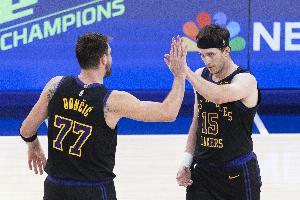 湖人队并不指望卢卡·东契奇能够在本轮系列赛中回归,他的复出时间尚未确定。但奥斯汀·里夫斯在场上训练中取得了一些进展。好的,那么我们还是抱有一丝希望,也许他们两人中有一人能回归。”